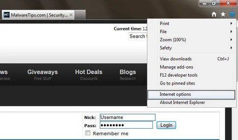 - Start the web Explorer browser and when you use Ie 9 ,click the gear icon (Tools for Ie 8 customers) ,then choose Internet Options.