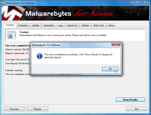 - Malwarebytes’ Anti-Adware and spyware will start getting rid of the malicious files.After finishing this it’ll display a note proclaiming that it must reboot,please allow this request after which give your PC boot in Normal mode.