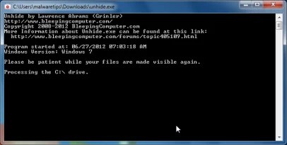 UNHIDE.EXE DOWNLOAD LINK (This link will instantly download the Unhide utility on your pc) - Double-click the Unhide.exe icon on your hard drive and permit this program to operate.The entire process shouldn’t take a lot more than ten minutes to accomplish,and also at the finish this utility will produce a report.